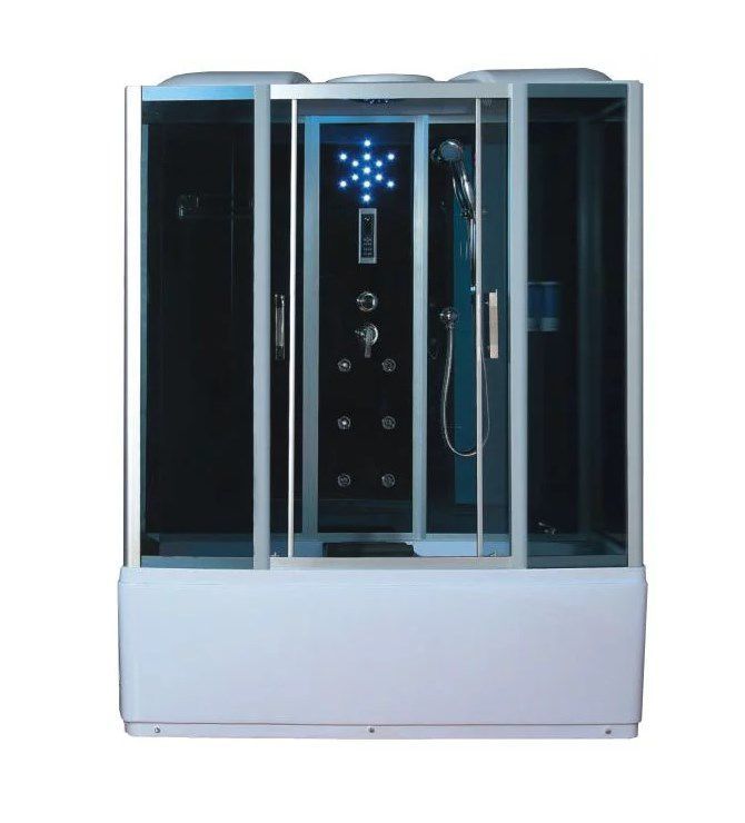| Дополнительные характеристики | Поддон акрилТип комбинированная закрытая кабинаСъемный экран из трех частей. Сливная система clik-clak со сливом-переливом. Анодированный алюминиевый профиль (матовый хром). Закаленное ударопрочное безопасное стекло толщиной 5 мм. Сенсорный пульт управл |