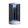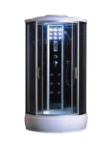 | Дополнительные характеристики | Поддон акрил Тип закрытая кабина Съемный экран. Сливная система clik-clak с сифоном. Анодированный алюминиевый профиль (матовый хром). Закаленное ударопрочное безопасное стекло толщиной 5 мм. Сенсорный пульт управления. Подсветка верхняя и боковая. FM-рад |