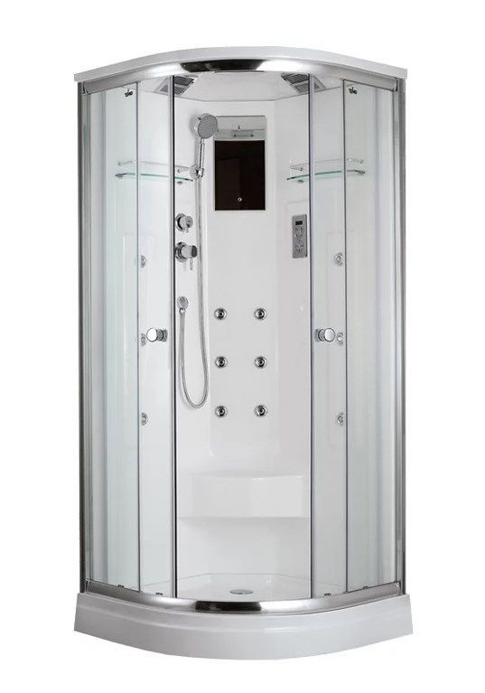 | Дополнительные характеристики | Тип закрытая кабина Акриловый поддон с сифоном и усиленным каркасом. Акриловая армированная, монолитная задняя стенка. Анодированный, алюминиевый, хромированный профиль. Закаленное ударопрочное безопасное стекло толщиной 6 мм. Сенсорный пульт управления. |