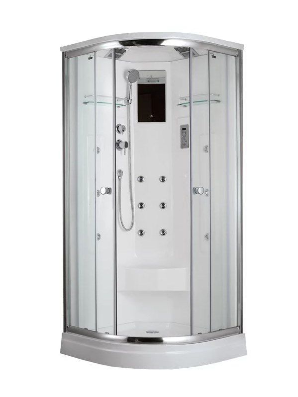 | Дополнительные характеристики | Тип закрытая кабина Акриловый поддон с сифоном и усиленным каркасом. Акриловая армированная, монолитная задняя стенка. Анодированный, алюминиевый, хромированный профиль. Закаленное ударопрочное безопасное стекло толщиной 6 мм. Сенсорный пульт управления. |