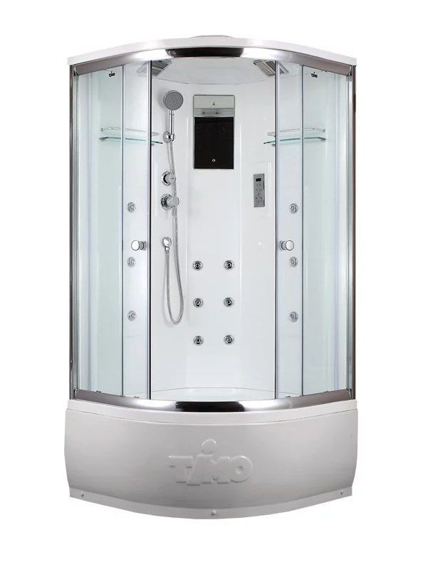 Душевая кабина Timo T-7790 S имеет удобное нет информации управление. Габариты данной модели составляют ШхВхД (см): 90x225x90. Поддон имеет форму четверть круга, высоту 48 см, тип - высокий поддон. Материал изготовления поддона - акрил. Стекло используется прозрачное. Кабина поставляется с крышей. Из особенностей данной модели стоит отметить, что у нее есть сиденье, есть гидромассаж. Наличие тропического душа: да.