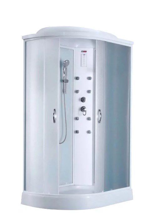 | Дополнительные характеристики | Поддон акрилТип закрытая кабина правосторонняяХромированный слив с сифоном. Алюминиевый профиль - БЕЛЫЙ МАТОВЫЙ. Задние стенки - стеклянные белые. Передние стекла - структурные матовые. Сенсорный пульт управления. Подсветка верхняя. FM-радио. Вентиляция |
