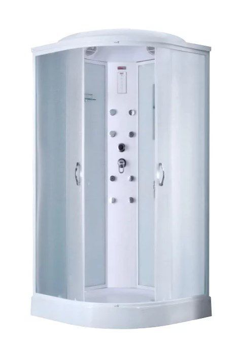 | Дополнительные характеристики | Поддон акрилТип закрытая кабинаХромированный слив с сифоном. Алюминиевый профиль - белый матовый. Задние стенки - стеклянные белые. Передние стекла - структурные матовые. Сенсорный пульт управления. Подсветка верхняя. FM-радио. Вентиляция. Смеситель одн |