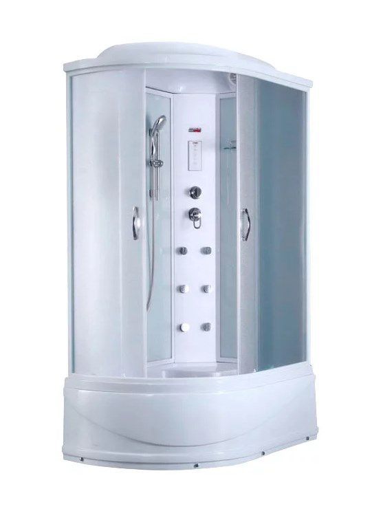 Дополнительные характеристики Поддон акрилТип закрытая кабина правосторонняяСъемный экран. Сливная система clik-clak с сифоном. Алюминиевый профиль - белый матовый. Задние стенки - стеклянные белые. Передние стекла - структурные матовые. Сенсорный пульт управления. Подсветка верхняя