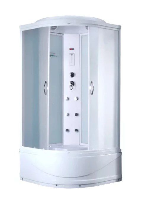 Дополнительные характеристики Поддон акрилТип закрытая кабинаСливная система clik-clak с сифоном. Алюминиевый профиль - белый матовый. Задние стенки - стеклянные белые. Передние стекла - структурные матовые. Сенсорный пульт управления. Подсветка верхняя. FM-радио. Вентиляция. Смесит
