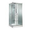 | Дополнительные характеристики | Тип закрытая кабина правосторонняя Акриловый поддон на жестком каркасе с сифоном. Анодированный алюминиевый профиль (матовый хром). Закаленное ударопрочное безопасное стекло толщиной 6мм. Стеклянные задние стенки бело-серебристого оттенка. Акриловая армир |