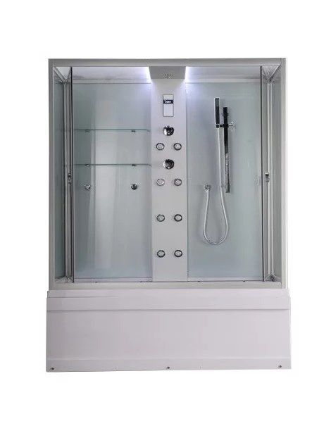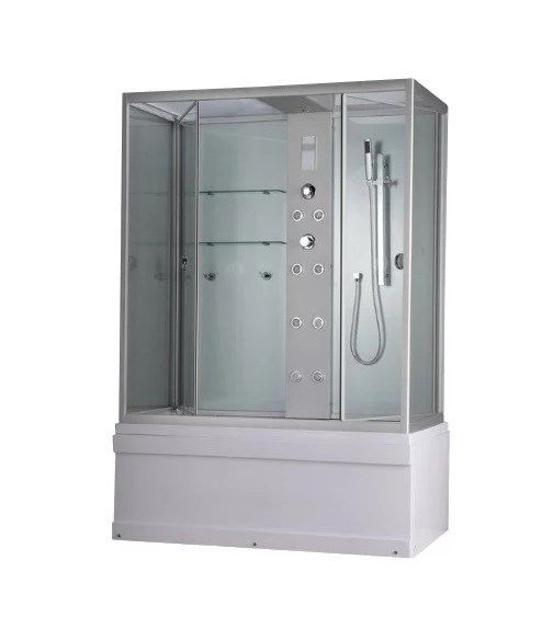 | Дополнительные характеристики | Поддон акрилТип комбинированная закрытая кабинаСъемный экран из трех частей. Сливная система со сливом-переливом полуавтомат. Анодированная алюминиевая задняя панель и профиль (матовый хром).Закаленное ударопрочное безопасное стекло толщиной 6мм. Стекл |