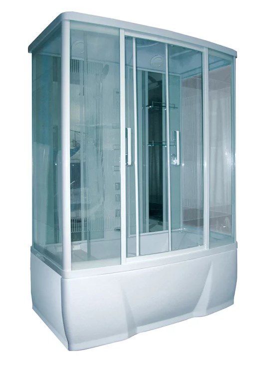 | Дополнительные характеристики | Поддон акрил Тип комбинированная закрытая кабина Варианты исполнения передних стенок - непрозрачные, полупрозрачные Вертикальный гидромассаж, гидромассаж спины, горизонтальный гидромассаж, аэромассаж, вентиляция, радио, верхняя подсветка Толщина передних |