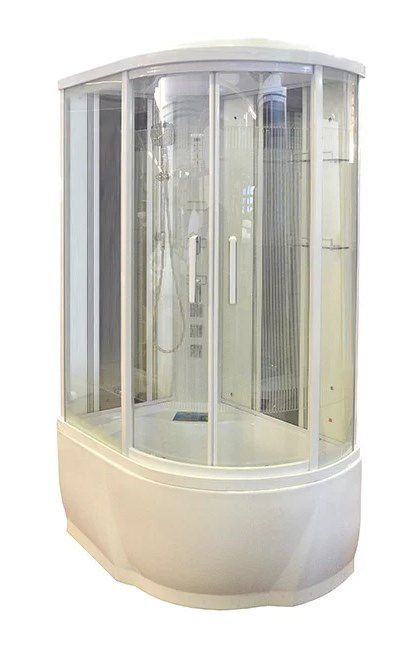 Дополнительные характеристики Поддон акрил Тип закрытая кабина левосторонняя Вертикальный гидромассаж, гидромассаж спины, вентиляция, радио, верхняя подсветка