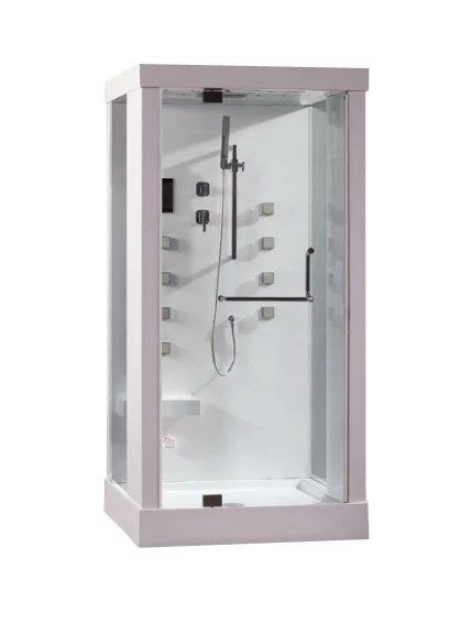 Квадратная и очень просторная кабина в современном стиле. Много внутри «выпуклых» деталей, которые при этом совершенно никак не уменьшают простор кабины, да и вообще не мешают. Стенки прочные, полностью прозрачные, дизайн современный. Есть многоцветная подсветка, управление сенсорное, но не переживайте, никаких случайных прикосновений – реагирует только на целенаправленное. Гидромассаж – еще один огромный плюс, расслабиться после тренировки самое то.