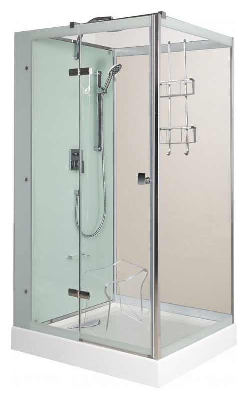 | Дополнительные характеристики | Левосторонняя. Фурнитура вся металл хром. Стекло прозрачное 8 мм. Ручной душ 3 положения с аэрацией. Полочка/подставка для ног. Подвесная полочка и стульчик (опция). На двери установлен сток для воды. |