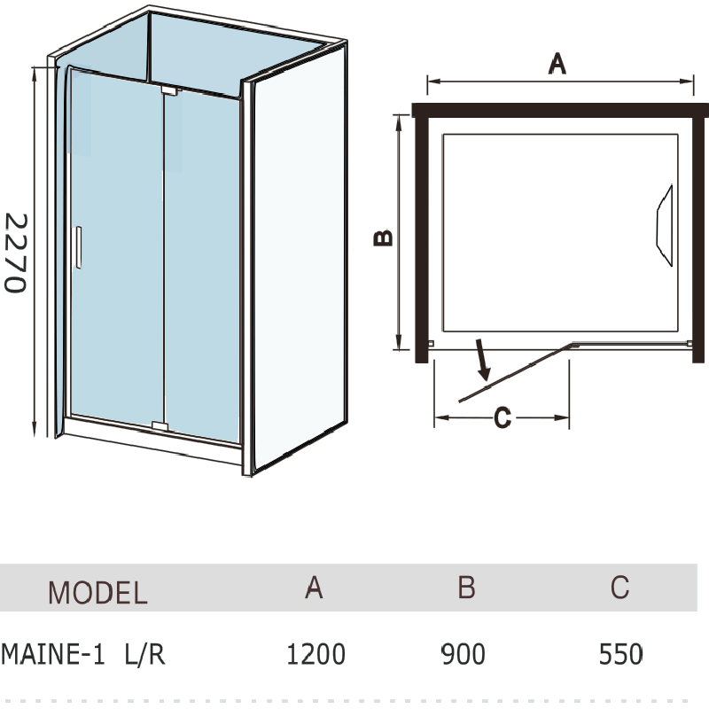 WW MAINE-1 120х90 R Размер 1200х900х2270 мм Душевая кабина