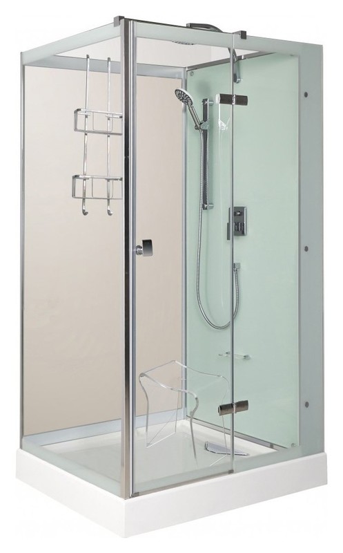 | Дополнительные характеристики | Правосторонняя. Фурнитура вся металл хром. Стекло прозрачное 8 мм. Ручной душ 3 положения с аэрацией. Полочка/подставка для ног. Подвесная полочка и стульчик (опция). На двери установлен сток для воды. |