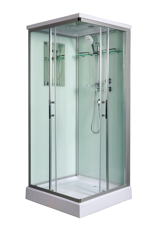 | Оснащение | полки, душевая лейка, зеркало, смеситель латунный с резьбовыми выходами, штанга с мыльницей |