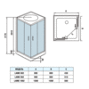 | Дополнительные характеристики | Вентиляционные отверстия Верхний металлический душ с системой Easy Clean. Ручной душ 3 положения. Длина шланга 1500-1900 мм. Шланг растягивается. Ручки металл хром. Двойные верхние металлические ролики. Силиконовые водонепроницаемые уплотнители. Сифон с г |