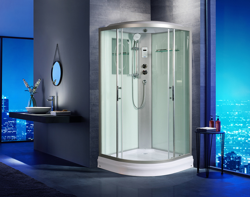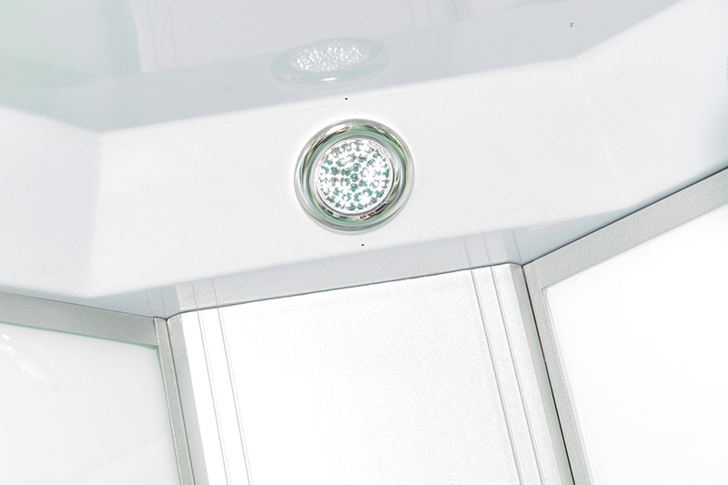 | Оснащение | полка, душевая лейка, зеркало, смеситель латунный с резьбовыми выходами, термостат, штанга с мыльницей, вентиляция, LED верхний свет, радио, Bluetooth. |