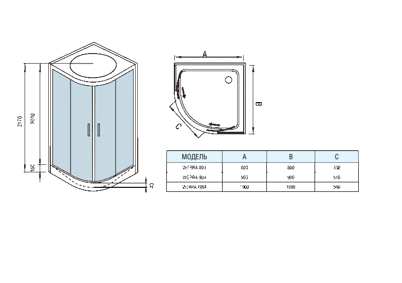 | Оснащение | полка, душевая лейка, зеркало, смеситель латунный с резьбовыми выходами, термостат, штанга с мыльницей, вентиляция, LED верхний свет, радио, Bluetooth. |