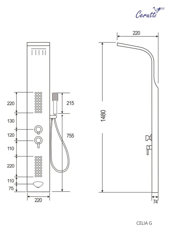 Душевая панель Cerutti SPA CELIA G CT10404, цвет золото