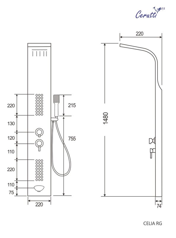 Душевая панель Cerutti SPA CELIA RG CT10406, цвет розовое золото