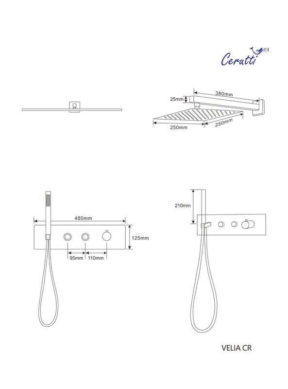 Душевая панель Cerutti SPA VELIA CR CT10398, цвет хром