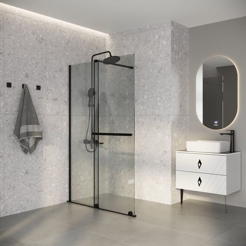 Душевая перегородка Niagara Nova NG-671-90BLACK (90х200) черный матовый,раздвижная,стекло прозрачное,1 место