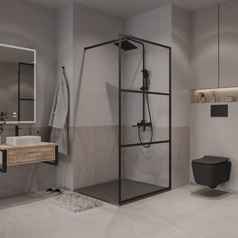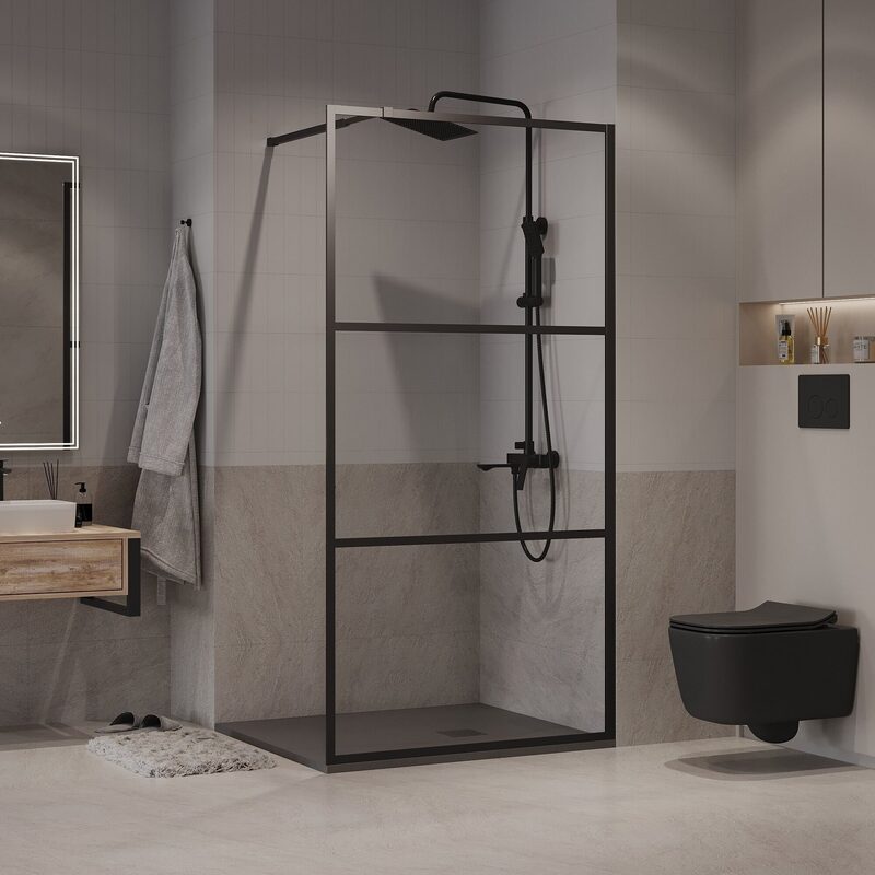 Душевая перегородка Niagara Nova NG-688-12BLACK (120*195) черный матовый, стекло прозрачное с рисунком,1 место