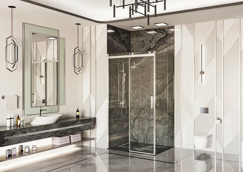 Раздвижные двери — это универсальная конструкция, занимающая минимум места в душевой кабине. Они удобны и функциональны, а также они предотвращают попадание воды за пределы пространства для мытья. Такая форма дверей может успешно герметизировать бокс, так что ни одна капля не окажется на полу. К тому же данная конфигурация не требует много места, что позволяет сэкономить пространство в ванной. Раздвижные двери не помешают уборке, ведь они не загораживают доступ к стенам и пространству душевой — в этом их неоспоримое преимуество.