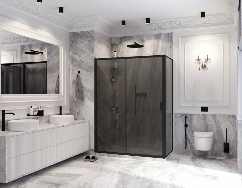 Раздвижные двери — это универсальная конструкция, занимающая минимум места в душевой кабине. Они удобны и функциональны, а также они предотвращают попадание воды за пределы пространства для мытья. Такая форма дверей может успешно герметизировать бокс, так что ни одна капля не окажется на полу. К тому же данная конфигурация не требует много места, что позволяет сэкономить пространство в ванной. Раздвижные двери не помешают уборке, ведь они не загораживают доступ к стенам и пространству душевой — в этом их неоспоримое преимуество.