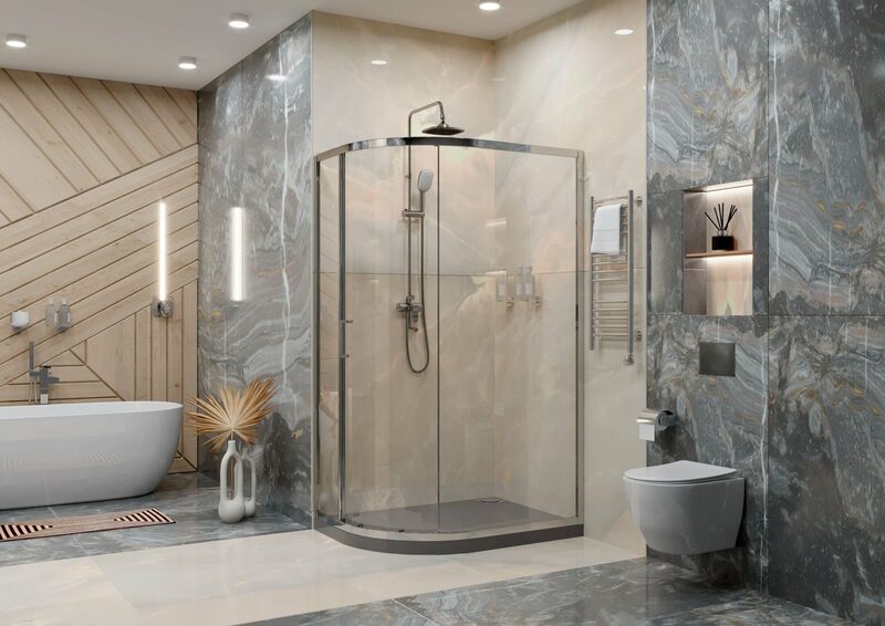 Раздвижные двери — это универсальная конструкция, занимающая минимум места в душевой кабине. Они удобны и функциональны, а также они предотвращают попадание воды за пределы пространства для мытья. Такая форма дверей может успешно герметизировать бокс, так что ни одна капля не окажется на полу. К тому же данная конфигурация не требует много места, что позволяет сэкономить пространство в ванной. Раздвижные двери не помешают уборке, ведь они не загораживают доступ к стенам и пространству душевой — в этом их неоспоримое преимуество.