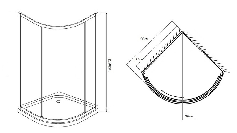 Форма поддона – четверть круга, такой вариант подходит для небольших и очень маленьких ванных. Душевой бокс монтируется в углу, максимально используя пространство. При этом кабинка остается удобной в эксплуатации, имеет достаточно места для установки душевого комплекта, небольшого раскладного сиденья при необходимости. Сегодня производители предлагают поддоны с формой четверть круга и для больших ванных. Такое решение повышает коэффициенты использования полезного пространства, позволяют правильно его организовать и сделать более практичным.