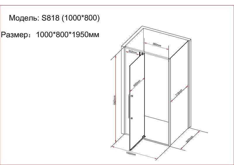 Душевое ограждение B&W S818 CF (1000х800х1950)