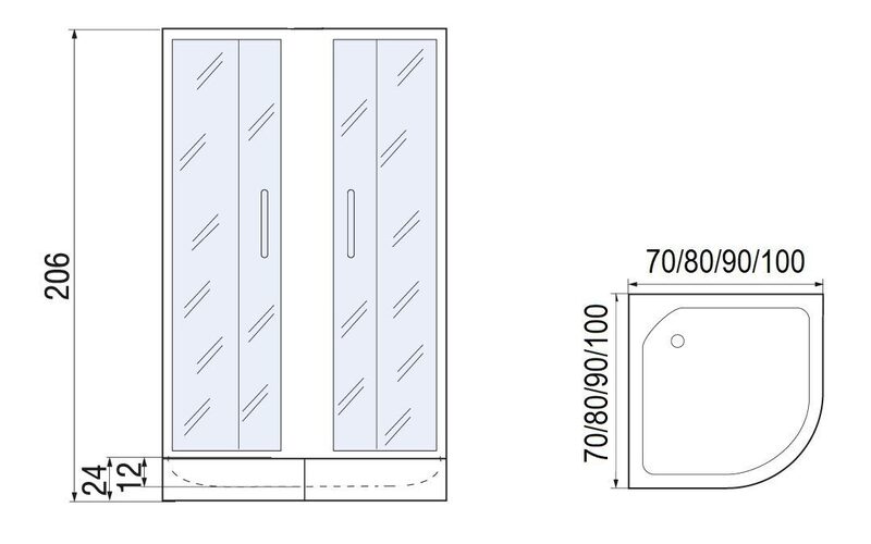 Раздвижные двери — это универсальная конструкция, занимающая минимум места в душевой кабине. Они удобны и функциональны, а также они предотвращают попадание воды за пределы пространства для мытья. Такая форма дверей может успешно герметизировать бокс, так что ни одна капля не окажется на полу. К тому же данная конфигурация не требует много места, что позволяет сэкономить пространство в ванной. Раздвижные двери не помешают уборке, ведь они не загораживают доступ к стенам и пространству душевой — в этом их неоспоримое преимуество.
