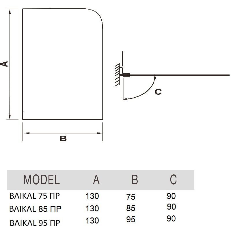 Душевое ограждение на ванну River BAIKAL 85 ПР