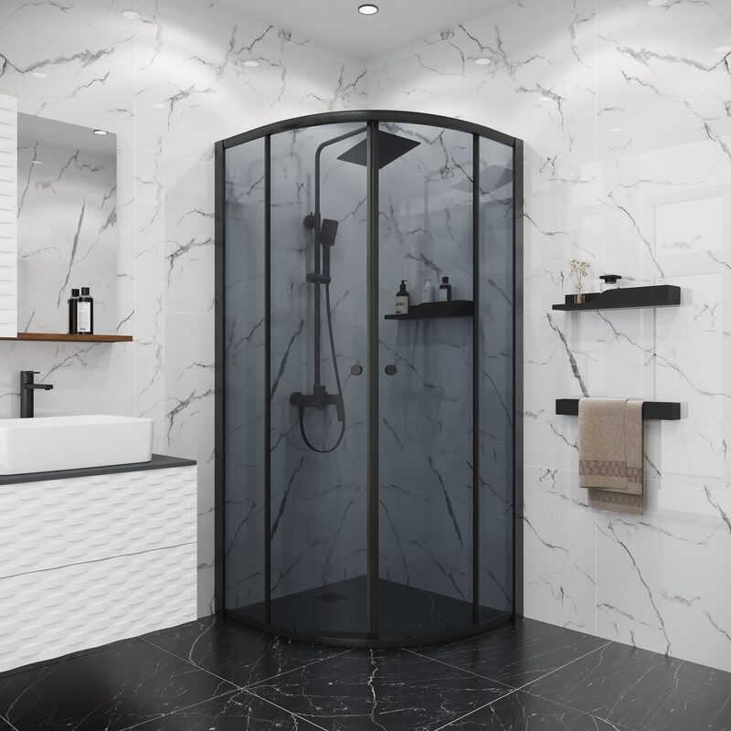 Душевое ограждение Niagara Eco NG-1003-14T (80х80х190) четверть круга,раздвижное,черный,стекло тонированное,1 место