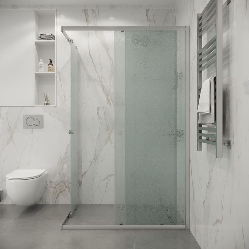 Раздвижные двери — это универсальная конструкция, занимающая минимум места в душевой кабине. Они удобны и функциональны, а также они предотвращают попадание воды за пределы пространства для мытья. Такая форма дверей может успешно герметизировать бокс, так что ни одна капля не окажется на полу. К тому же данная конфигурация не требует много места, что позволяет сэкономить пространство в ванной. Раздвижные двери не помешают уборке, ведь они не загораживают доступ к стенам и пространству душевой — в этом их неоспоримое преимуество.