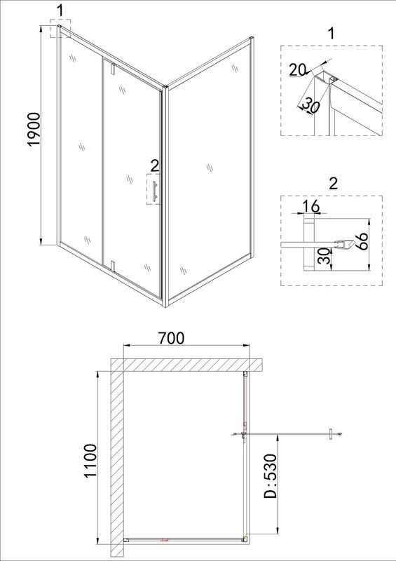 Душевое ограждение Niagara NG-43-11AG-A70G (110*70*190) прямоугольник, дверь распашная, 2 места