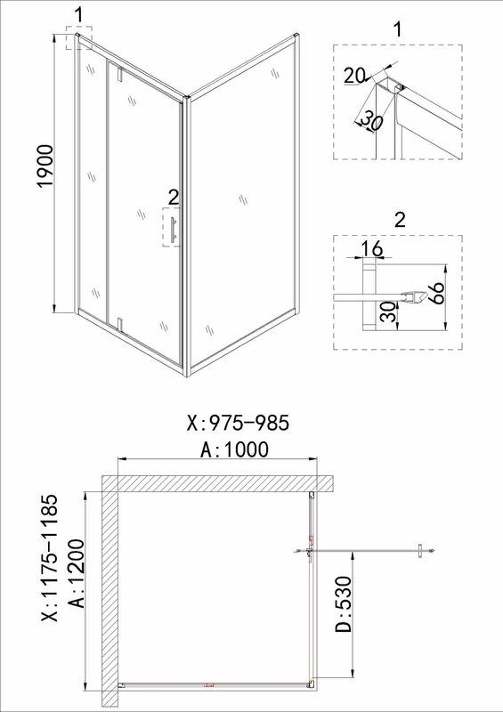 Душевое ограждение Niagara NG-43-12AG-A100G (120*100*190) прямоугольник, дверь распашная, 2 места