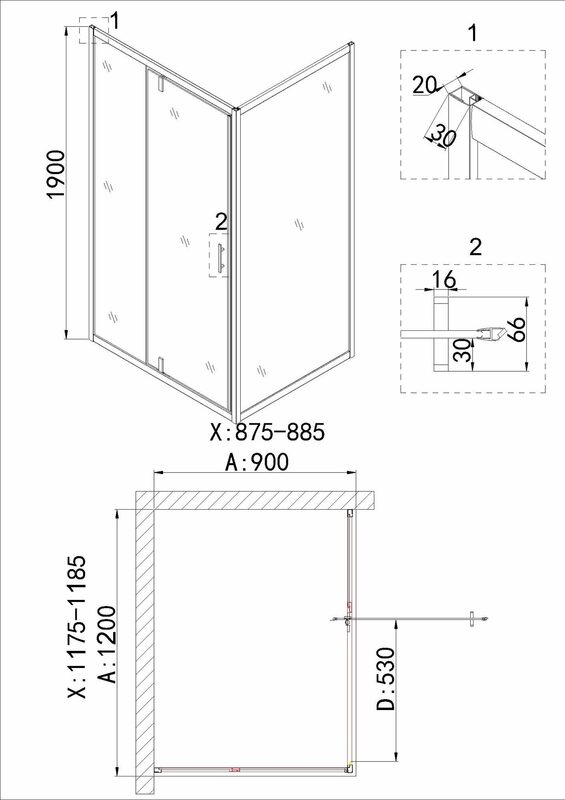 Душевое ограждение Niagara NG-43-12AG-A90G (120*90*190) прямоугольник, дверь распашная, 2 места
