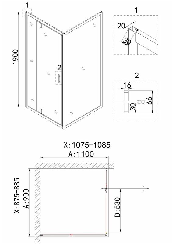 Душевое ограждение Niagara NG-43-9AG-A110G (90*110*190) прямоугольник, дверь распашная, 2 места