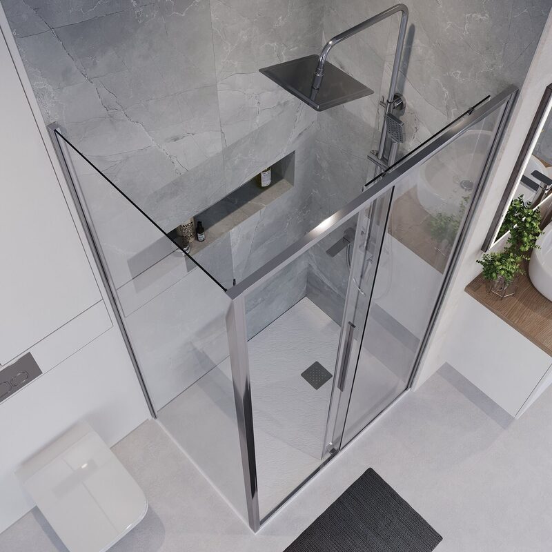 Раздвижные двери — это универсальная конструкция, занимающая минимум места в душевой кабине. Они удобны и функциональны, а также они предотвращают попадание воды за пределы пространства для мытья. Такая форма дверей может успешно герметизировать бокс, так что ни одна капля не окажется на полу. К тому же данная конфигурация не требует много места, что позволяет сэкономить пространство в ванной. Раздвижные двери не помешают уборке, ведь они не загораживают доступ к стенам и пространству душевой — в этом их неоспоримое преимуество.