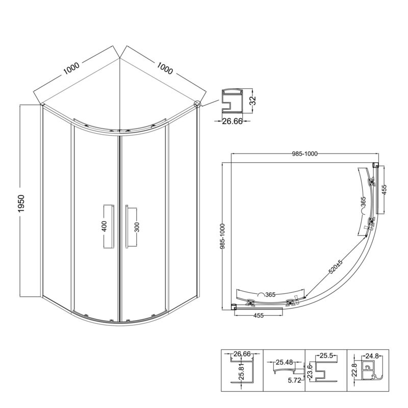 Душевое ограждение Niagara Nova NG-6627-34 (100*100*195) полукруг, раздвижная, хром, стекло прозрачное, 1 мест