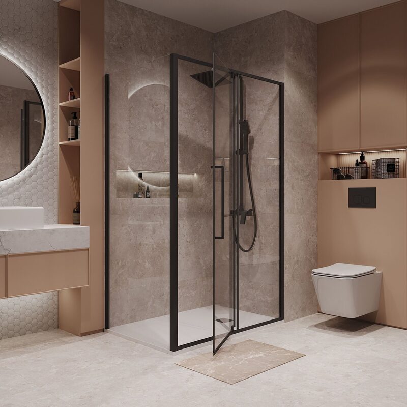 Душевое ограждение Niagara Nova NG-85-12AB-A90B-34 (120*90*195) прямоугол,распашн,черный матов,стекло прозрачн,2 мест