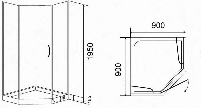 Форма поддона – многогранная, предназначенная для угловой установки. Конструкция используется при необходимости правильной организации пространства, использования площади небольшого санузла или в ванным с нестандартной, сложной конфигурацией. Визуально такой поддон кажется большим, но на самом деле он занимает не так много места. Особая многогранная форма отличается хорошей эргономикой, принимать душ будет удобно даже людям с крупной комплекцией. Минимальная длина поддона может составлять 80 см, максимальная – 120 см и даже больше, выбор зависит от площади ванной комнаты.