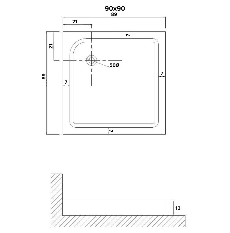 Форма поддона – квадратная отлично подходит для помещений, ограниченных по площади. Стандартные габариты таких поддонов составляют 90*90 см, что вполне достаточно для принятия душа без риска упираться коленями или локтями в стены или дверки кабинки. Для изготовления таких поддонов используются разные материалы, безопасность обеспечивает противоскользящее покрытие или специальный рельеф. Слив может находиться по центру, около одной из сторон или в углу поддона. Высота бортов также может быть различной, что зависит от назначения и особенностей использования душевой кабины.