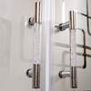 Двери для таких конструкций могут изготавливаться как из пластика, так и из других материалов, в том числе и из стекла. Поверхности бывают как полностью прозрачными, так и затемненными, матовыми, с узорами и эффектом капель — вы можете выбрать из множества вариантов.