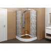 Форма поддона – четверть круга, такой вариант подходит для небольших и очень маленьких ванных. Душевой бокс монтируется в углу, максимально используя пространство. При этом кабинка остается удобной в эксплуатации, имеет достаточно места для установки душевого комплекта, небольшого раскладного сиденья при необходимости. Сегодня производители предлагают поддоны с формой четверть круга и для больших ванных. Такое решение повышает коэффициенты использования полезного пространства, позволяют правильно его организовать и сделать более практичным.