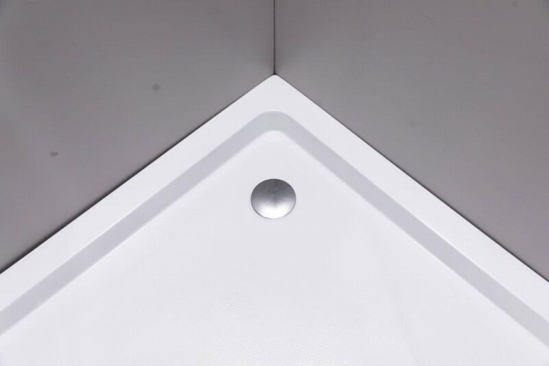Форма поддона – квадратная отлично подходит для помещений, ограниченных по площади. Стандартные габариты таких поддонов составляют 90*90 см, что вполне достаточно для принятия душа без риска упираться коленями или локтями в стены или дверки кабинки. Для изготовления таких поддонов используются разные материалы, безопасность обеспечивает противоскользящее покрытие или специальный рельеф. Слив может находиться по центру, около одной из сторон или в углу поддона. Высота бортов также может быть различной, что зависит от назначения и особенностей использования душевой кабины.