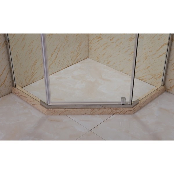 Форма поддона – многогранная, предназначенная для угловой установки. Конструкция используется при необходимости правильной организации пространства, использования площади небольшого санузла или в ванным с нестандартной, сложной конфигурацией. Визуально такой поддон кажется большим, но на самом деле он занимает не так много места. Особая многогранная форма отличается хорошей эргономикой, принимать душ будет удобно даже людям с крупной комплекцией. Минимальная длина поддона может составлять 80 см, максимальная – 120 см и даже больше, выбор зависит от площади ванной комнаты.