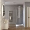 Раздвижные двери — это универсальная конструкция, занимающая минимум места в душевой кабине. Они удобны и функциональны, а также они предотвращают попадание воды за пределы пространства для мытья. Такая форма дверей может успешно герметизировать бокс, так что ни одна капля не окажется на полу. К тому же данная конфигурация не требует много места, что позволяет сэкономить пространство в ванной. Раздвижные двери не помешают уборке, ведь они не загораживают доступ к стенам и пространству душевой — в этом их неоспоримое преимуество.