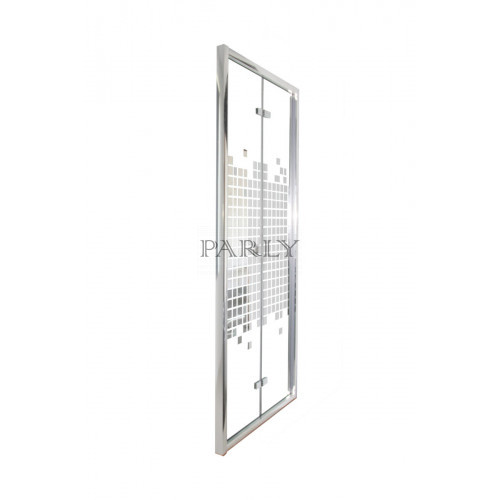 | Дополнительные характеристики | дверь складная из 2х частей, тонированное стекло с 5 мм с двусторонним мозаичным рисунком. Полированный алюминиевый профиль, петли и ручки из стали. |